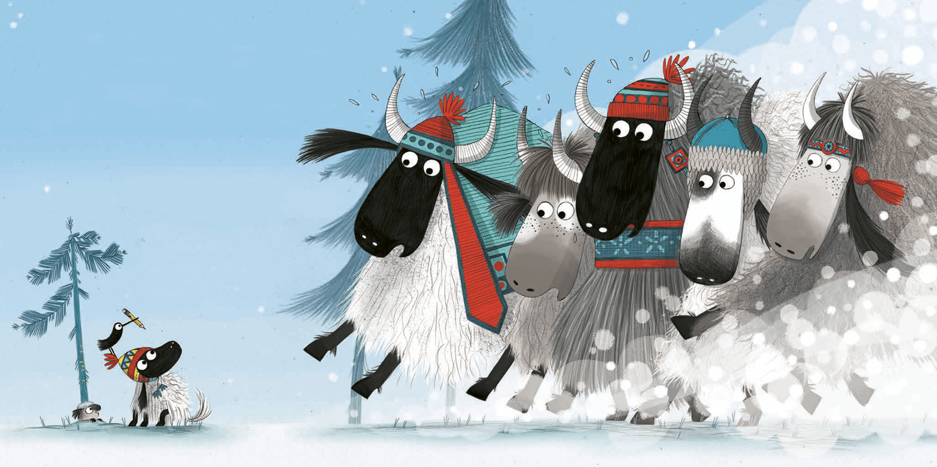On the tip of the top of a mountain all snowy, where the ice-swirling, toe-curling blizzards were blowy, in a herd full of huddling yaks, big and small, lived Gertie... the littlest yak of them all.